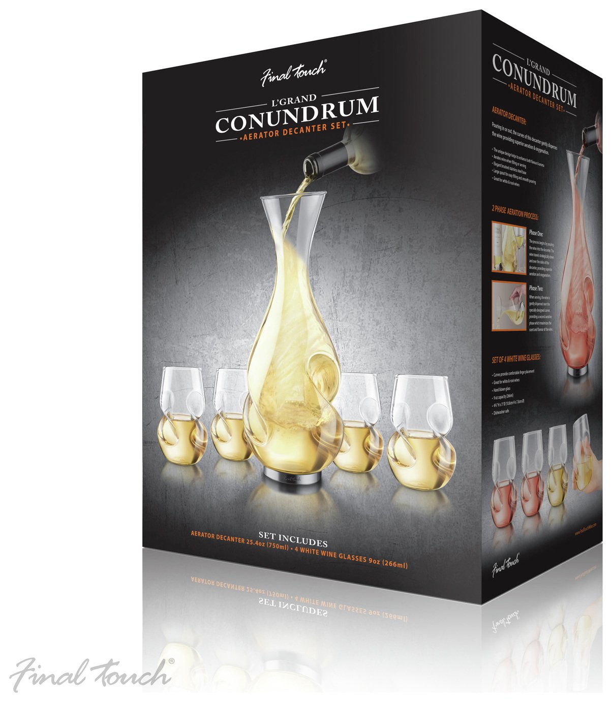 Conundrum Wine Decanter (Half Bottle) - Wine Gift Centre from www.winegiftcentre.com Final touch conundrum red wine glasses (set of 4) cdn$ 33.99. Decanter sættet fra final touch, er gennemtænkt til perfektion. Infatti la fascia di prezzo varia dalle 25 alle 60 euro circa. The process begins by pouring wine into the decanter. L'grand conundrum aerator decanter set by final touch includes a unique wine carafe with extravagant style and four mouth blown wine glasses! Decanter l'grand conundrum aerator final touch decanter dal particolare design che permette di versare il vino direttamente dalla bottiglia al bicchiere. Davvero, final touch ha prodotto decanter per tutti i gusti, ma anche per tutte le tasche. Final touch flavour enhancer aerator & decanter set.